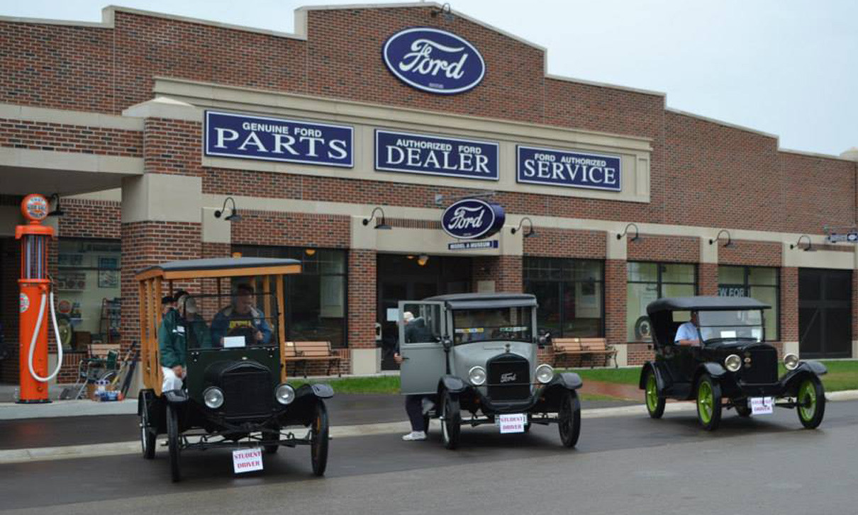 | Los alumnos yendo a clases. El Museo Gilmore enseña a conducir al Ford T. |