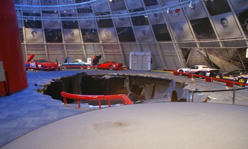 La pasada semana el National Corvette Museum fue el escenario de algo poco común, el piso literalmente se abrió, creando un pozo de 12 metros de ancho y aproximadamente 10 de profundidad, que tragó ocho unidades del museo, las que obviamente estaban en perfecto estado de conservación. Un verdadero crimen, y acá está el video filmado por las cámaras de seguridad.